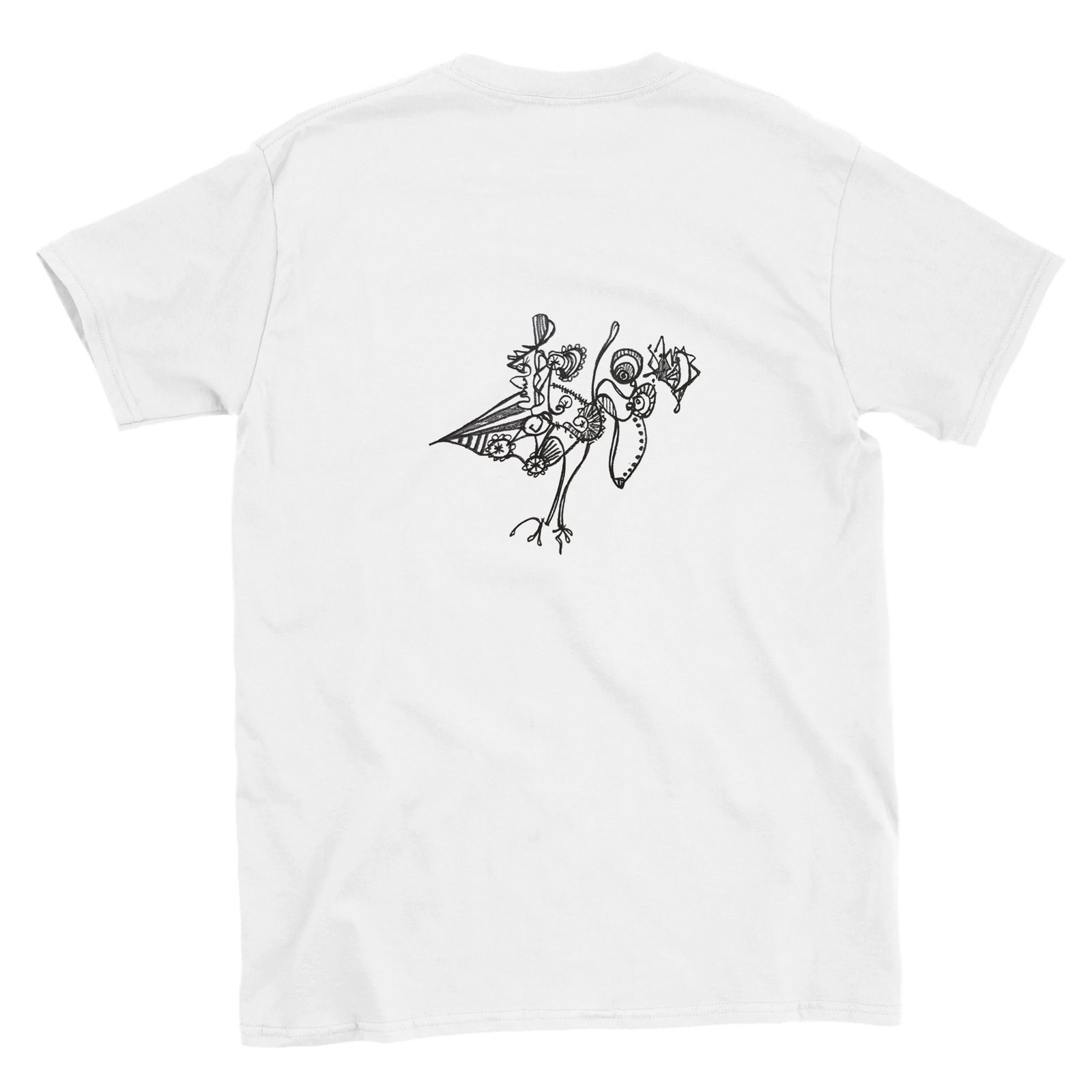 Donnez à la garde-robe de votre enfant une touche créative avec ce t-shirt pour enfants audacieux et moderne, orné d’un motif abstrait d’échassier. 🐦🎨 Idéal pour les jeunes esprits qui aiment la nature, l’art et l’originalité.